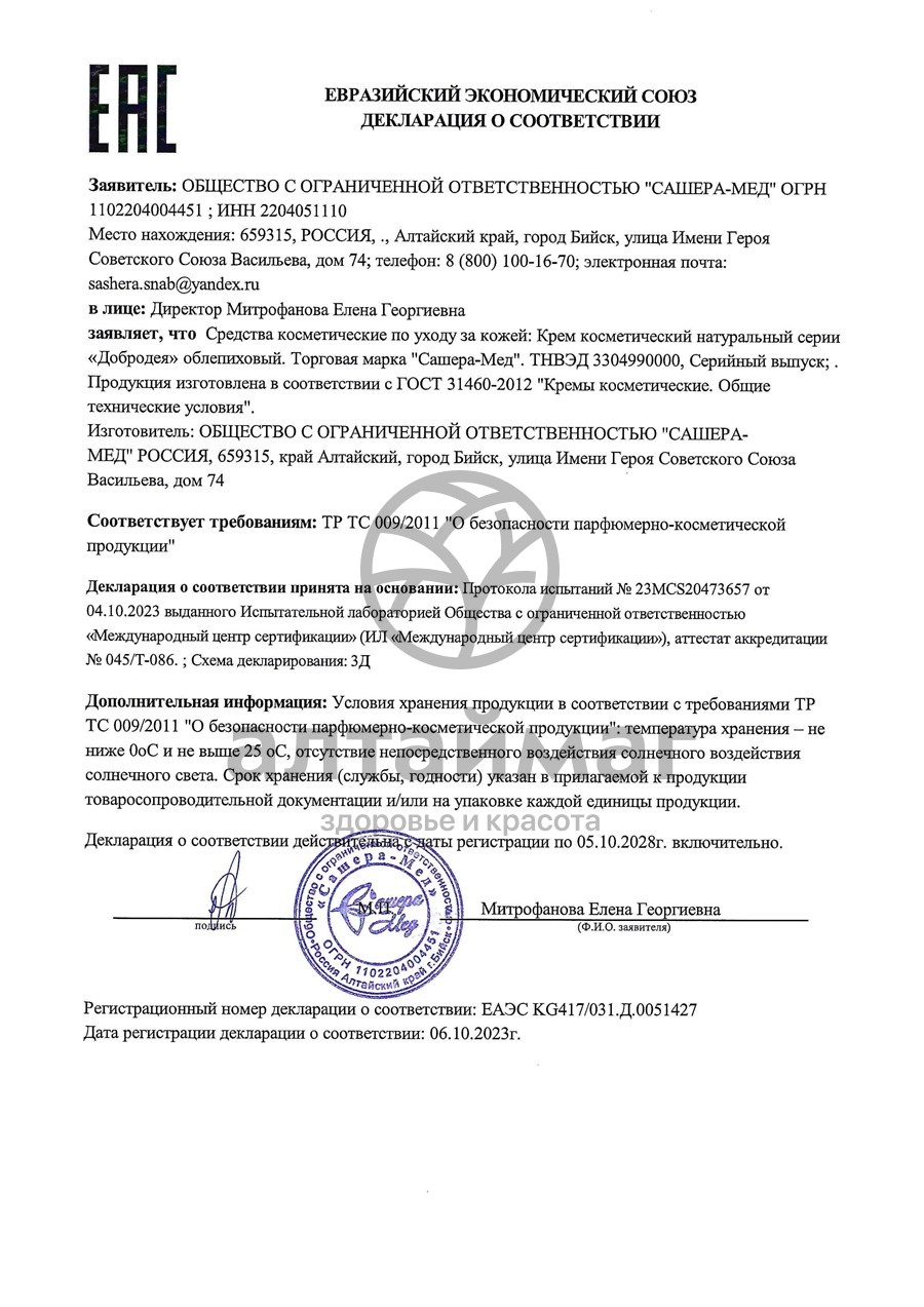 Крем «Облепиховый» серии «Добродея» способствует устранению пигментных пятен, выравнивает цвет лица, обладает отбеливающим действием, корректирует и выравнивает структуру кожи. Подходит для любого типа кожи, включая кожу младенцев и дряблую кожу. Крем гипоаллергенен.