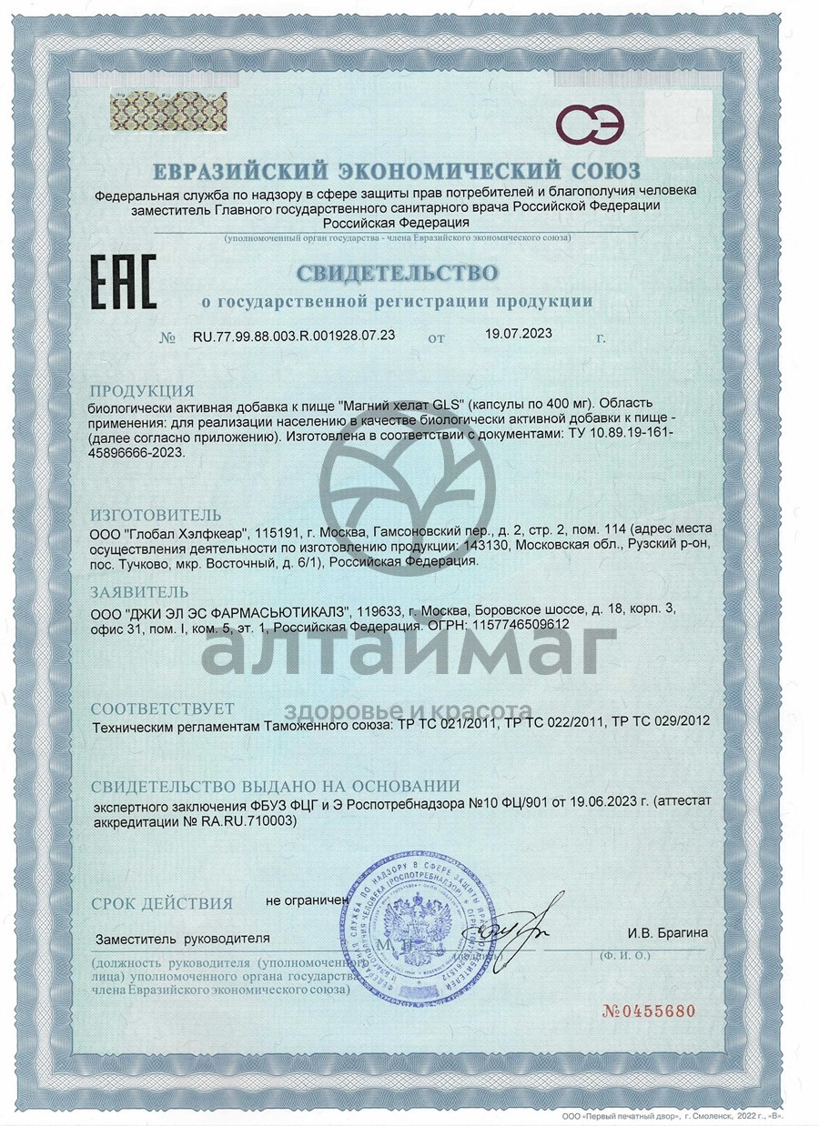 - Купите Магний Хелат GLS 180 капсул в Витебске по доступной цене 733 ₽ с доставкой на дом или заберите Ваш заказ в Витебске из ближайшего пункта выдачи, сделав заказ на AltaiMag.ru.