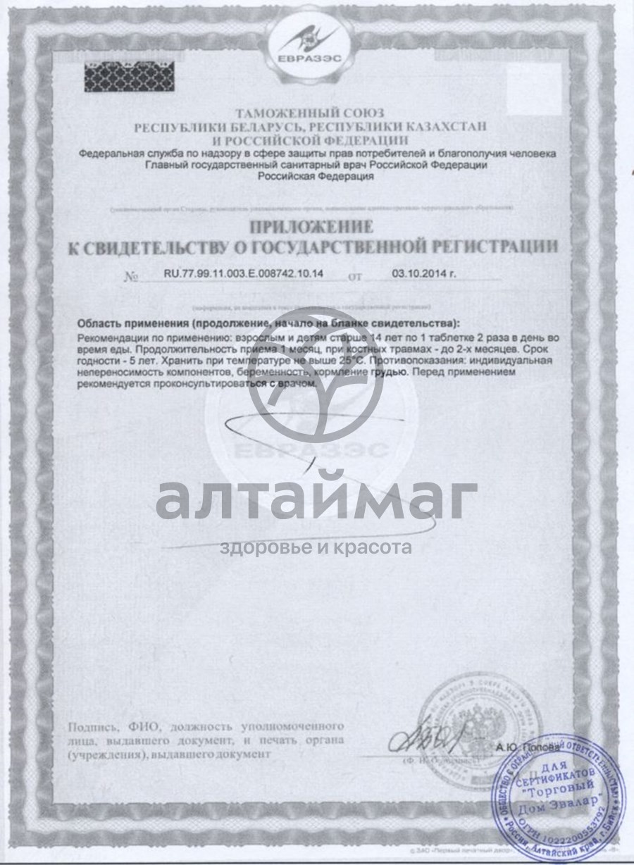 Взрослым и детям старше 14 лет – по 1 таблетке 2 раза в день во время еды.Продолжительность приема – 1 месяц, при костных травмах – до 2 месяцев.