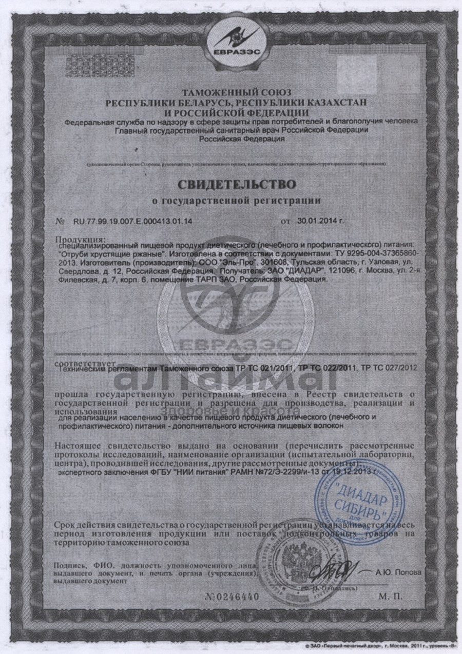 Отруби диадар ржаные хрустящие 200г в Витебске