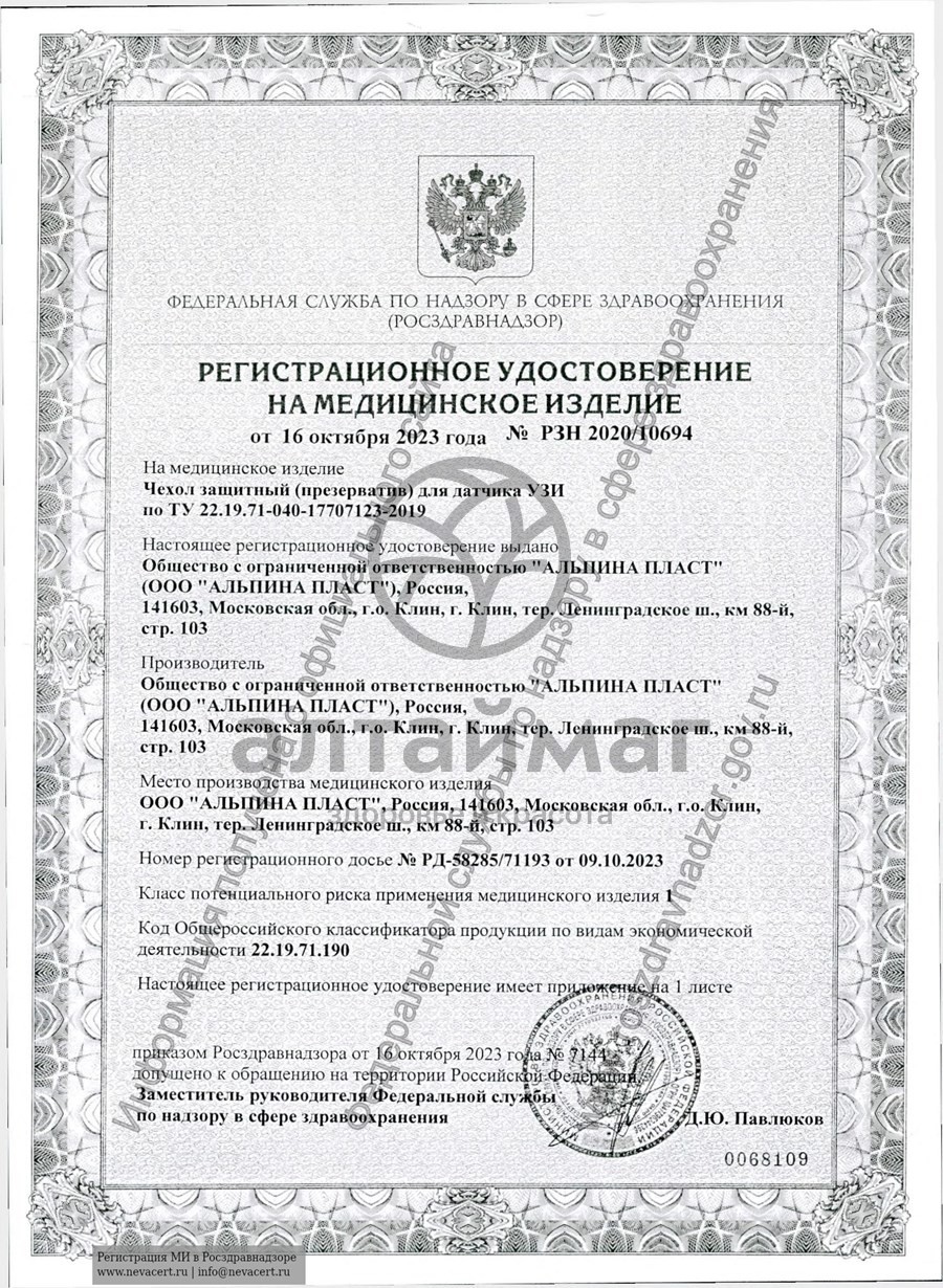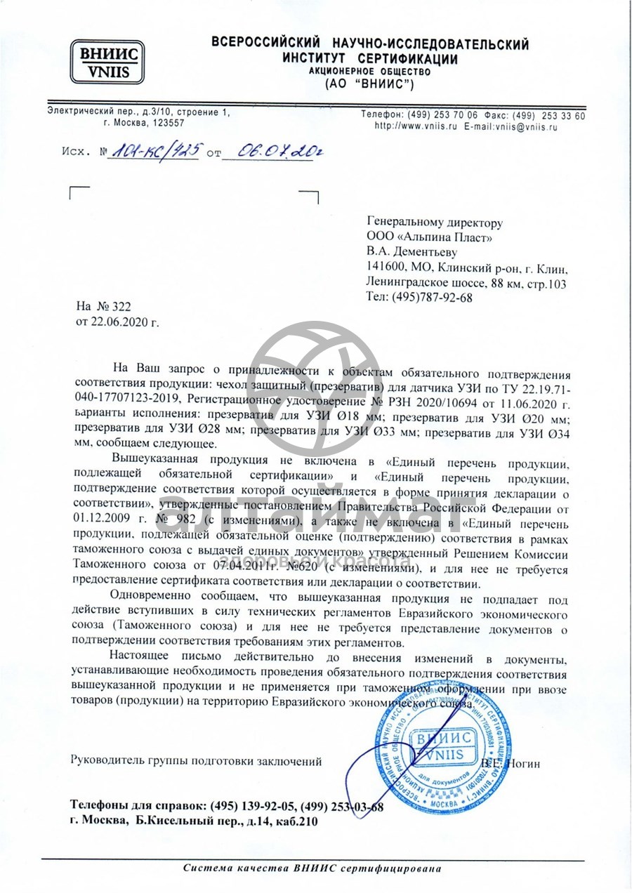 1 презерватив для ультразвукового исследования.