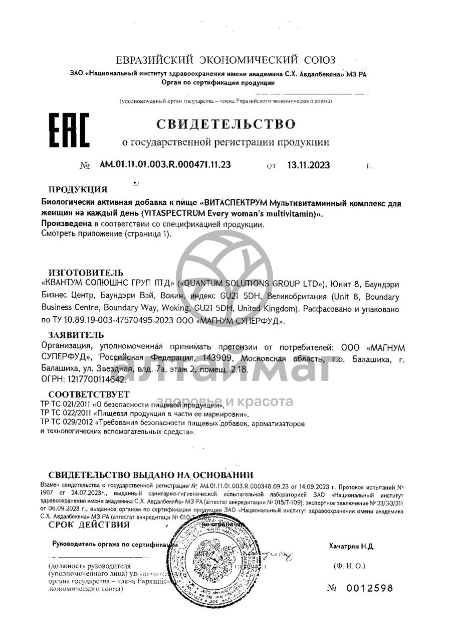 - Купите Витамины для женщин VitaSpectrum 60 таблеток в Витебске по доступной цене 785 ₽ с доставкой на дом или заберите Ваш заказ в Витебске из ближайшего пункта выдачи, сделав заказ на AltaiMag.ru.